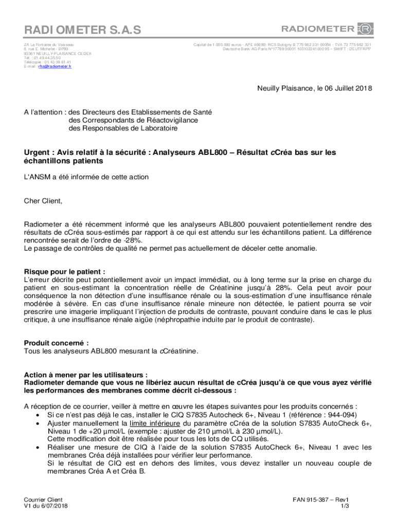 Email : rfra@radiometer.frCapital de 1,050,000 euros APE 4669B