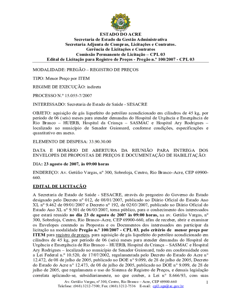Obtenha o gratuito OBJETO: aquisio de gs liquefeito do petrleo acondicionado em cilindros de 45 k...