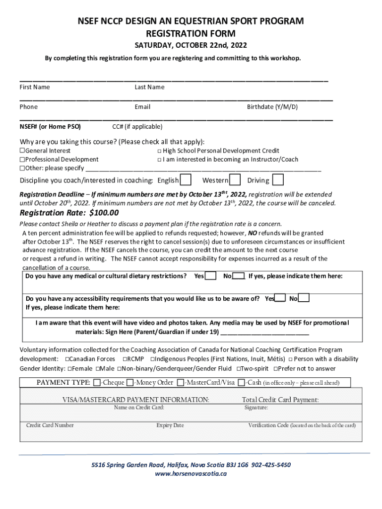 CCP DESIGN AN EQUESTRIAN SPORT PROGRAM Saturday, October 22nd 9:00 a.m. to 5:00 p.m. (Course begins at 9:00, so please arrive a few minutes before) Location: Sport Nova Scotia Classroom, 5516 Spring