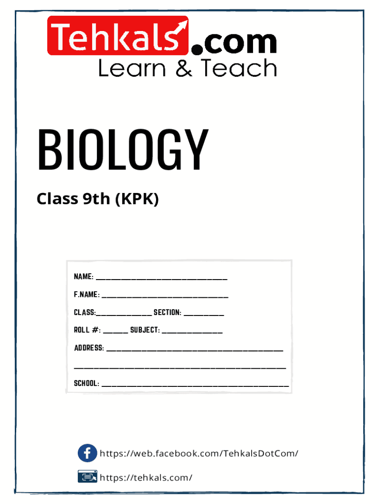 BIOLOGY Class 9th (PKK)NAME: ___ F.NAME: ___ CLASS:___ SECTION: ___ ROLL #: ___ SUBJECT: ___ ADDRESS: ___ ___ SCHOOL: ___https://web.facebook.com/TehkalsDotCom/ https://tehkals.com/https://web.facebook.com/TehkalsDotCom/