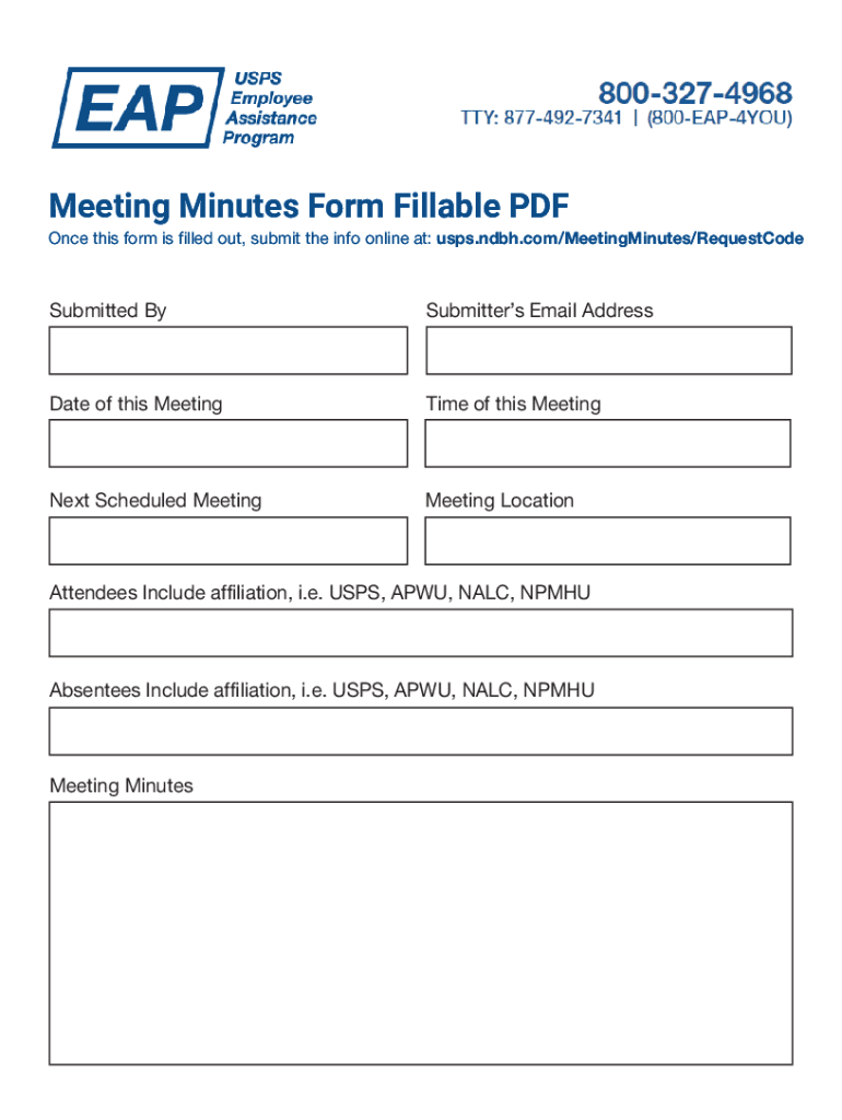 Once this form is filled out, submit the info online at: usps.ndbh.com/MeetingMinutes/RequestCodeSubmitted Submitters Email Addressable of this MeetingTime of this