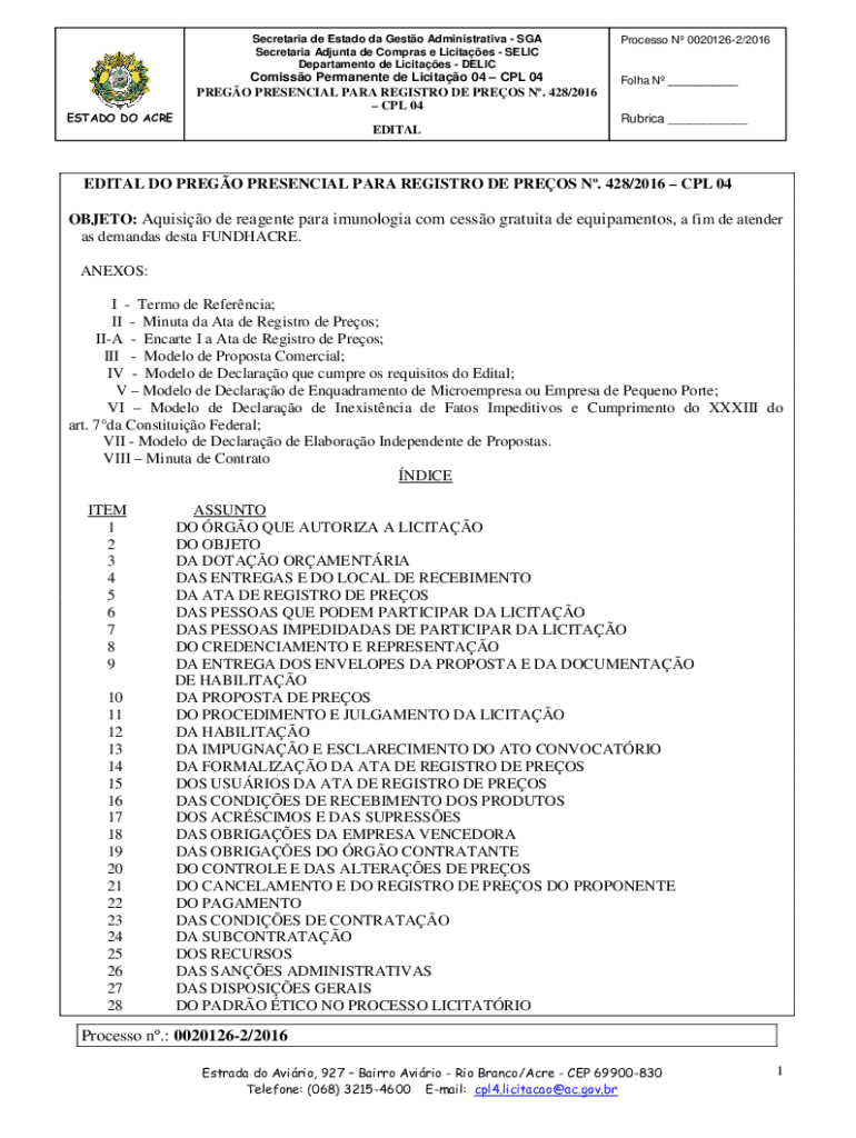 Obtenha o gratuito OBJETO: Aquisio de reagente para imunologia com ...