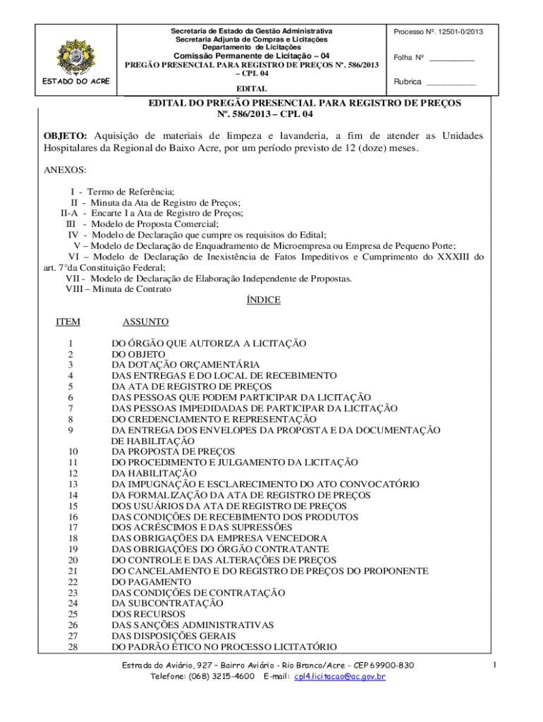 Department de LicitaesESTADO DO ACREComisso Permanent de Licitao 04
