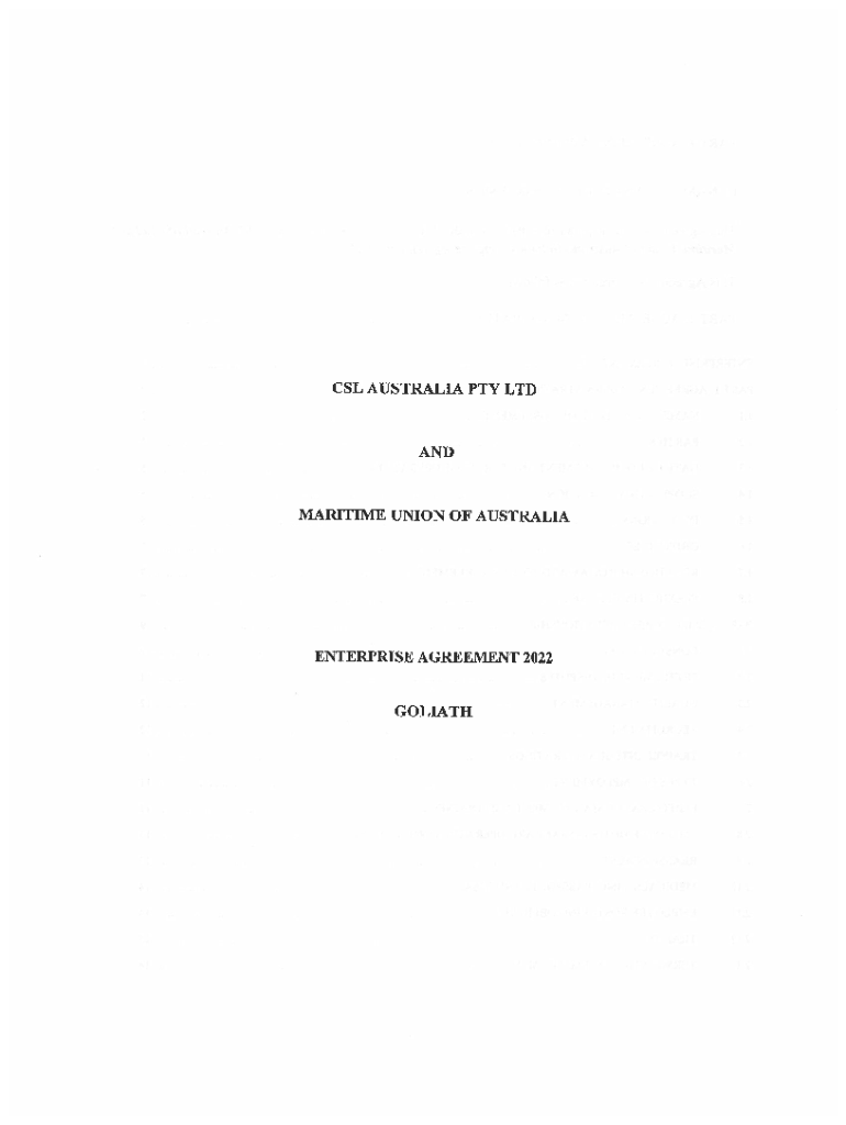 CSL AUSTRIA TINA PTY LTD AND MARITIME UNION OF AUSTRALIAENTERPRISEAGREEMENTGOLIATH2022PART 1: AGREEMENT ADMINISTRATION 1.1NAME AND NATURE OF Agreements Agreements made pursuant to Part 24 of the Act