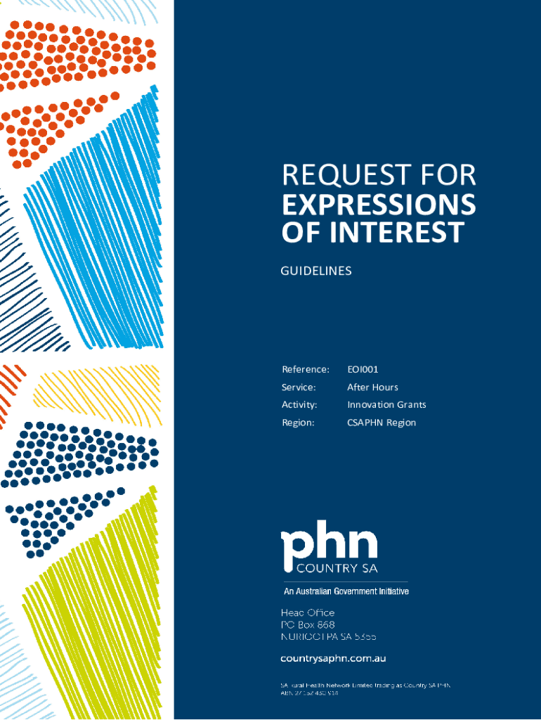 GUIDELINESReference:EOI001Service:After HoursActivity:Innovation GrantsRegion:CAPON RegionRequest for Expressions of InterestCountry SA REQUEST FOR EXPRESSIONS