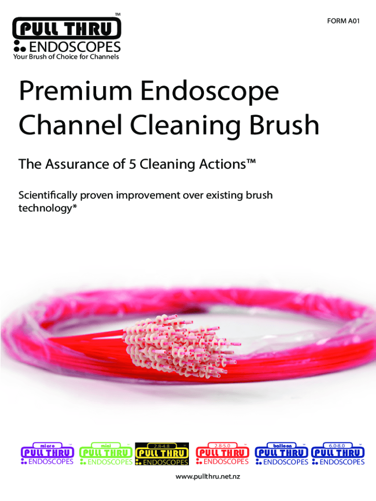 FORM A01PULL THRUENDOSCOPESYour Brush of Choice for ChannelsPremium Endoscope Channel Cleaning Brush The Assurance of 5 Cleaning Actions Scientifically proven improvement over existing brush technology×microtubule