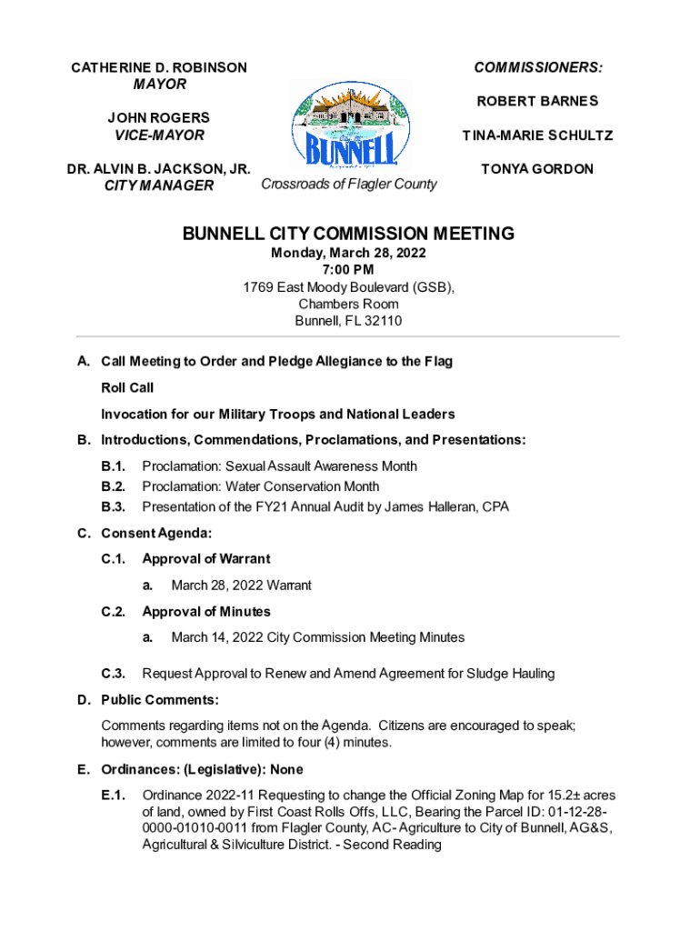 COMMISSIONERS:CATHERINE D. ROBINSON MAYORROBERT BARNES JOHN ROGERS VICEMAYORTINAMARIE SCHULTZ. ALVIN B. JACKSON, JR. Crossroads of Flagler County CITY MANAGERTONYA GORDONBUNNELL CITY COMMISSION MEETING