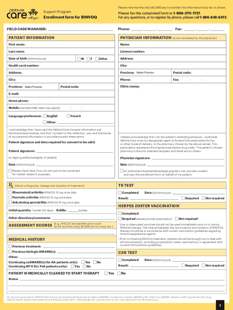 Get the free Support Program - Rheumatology enrollment form for RINVOQ