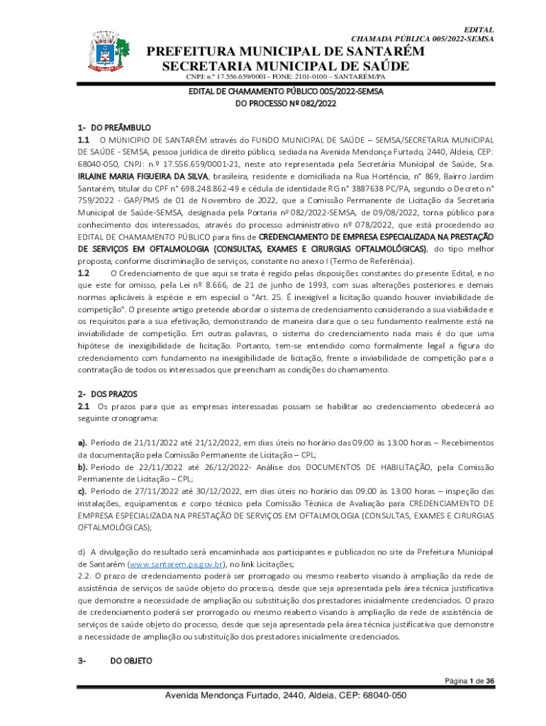 EDIT AL CHAM ADA PBL ICA 005/2022SEMSAPREFEITURA MUNICIPAL DE SANTA SECRETARIAT MUNICIPAL DE SADE CNJ: n. 17.556.659/0001 ONE: 21010100 SANTA/CAPITAL DE CHALAMET PBL ICO 005/2022SEMSA DO PROCESS N