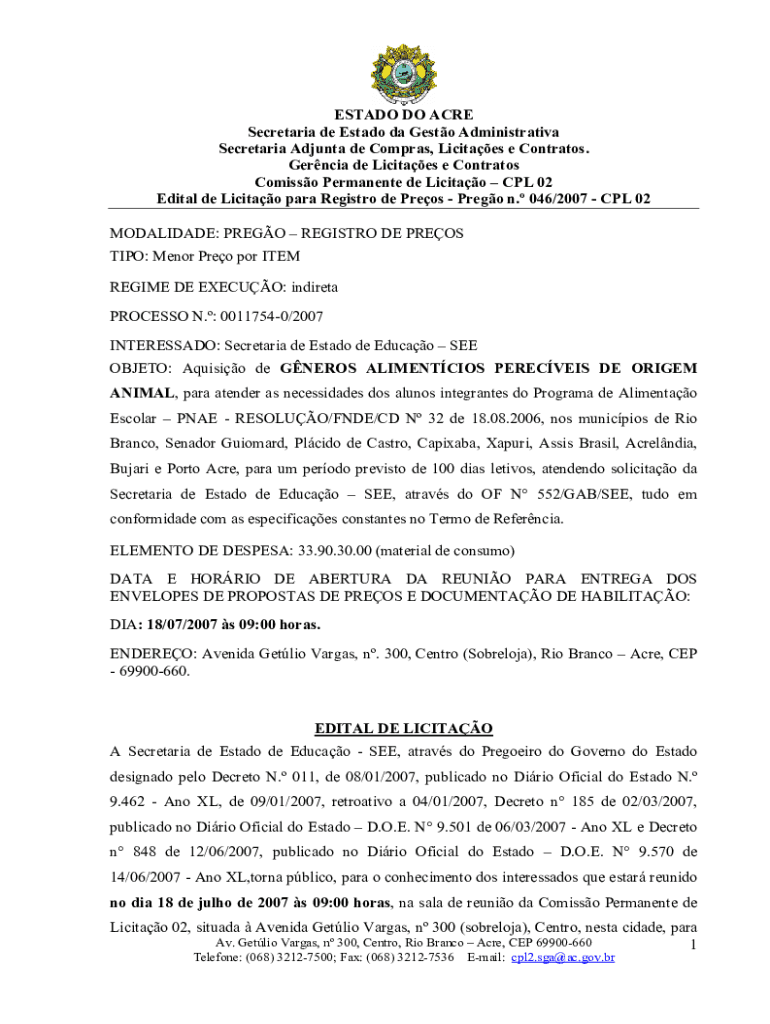 Obtenha o gratuito OBJETO: Aquisio de GNEROS ALIMENTCIOS PERECVEIS DE ORIGEM