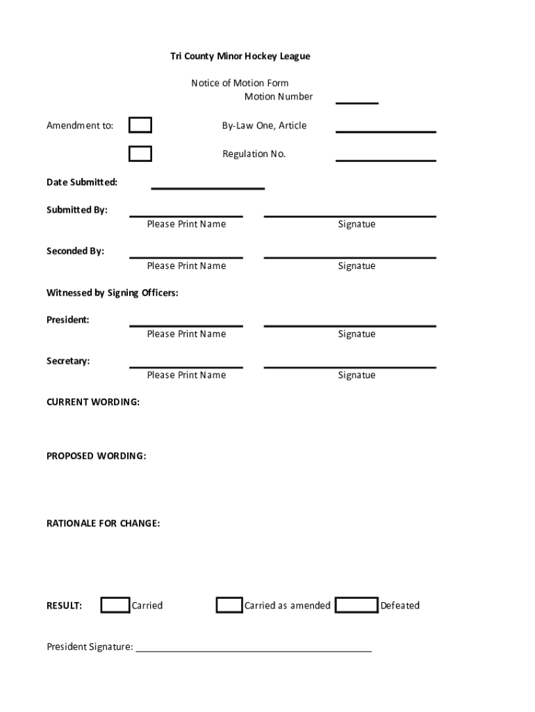 Get the free Notice of Motion Form - Tri-County Minor Hockey League