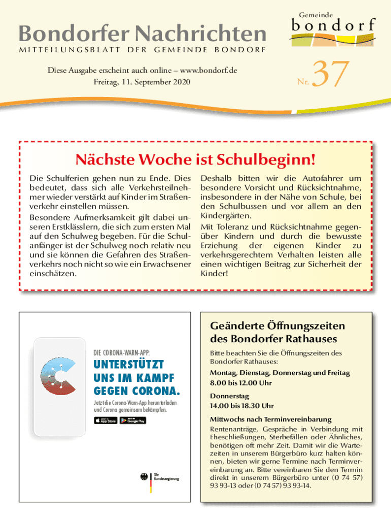 Freytag, 11. September 2020Nr.37Nchste Roche is Schulbeginn!