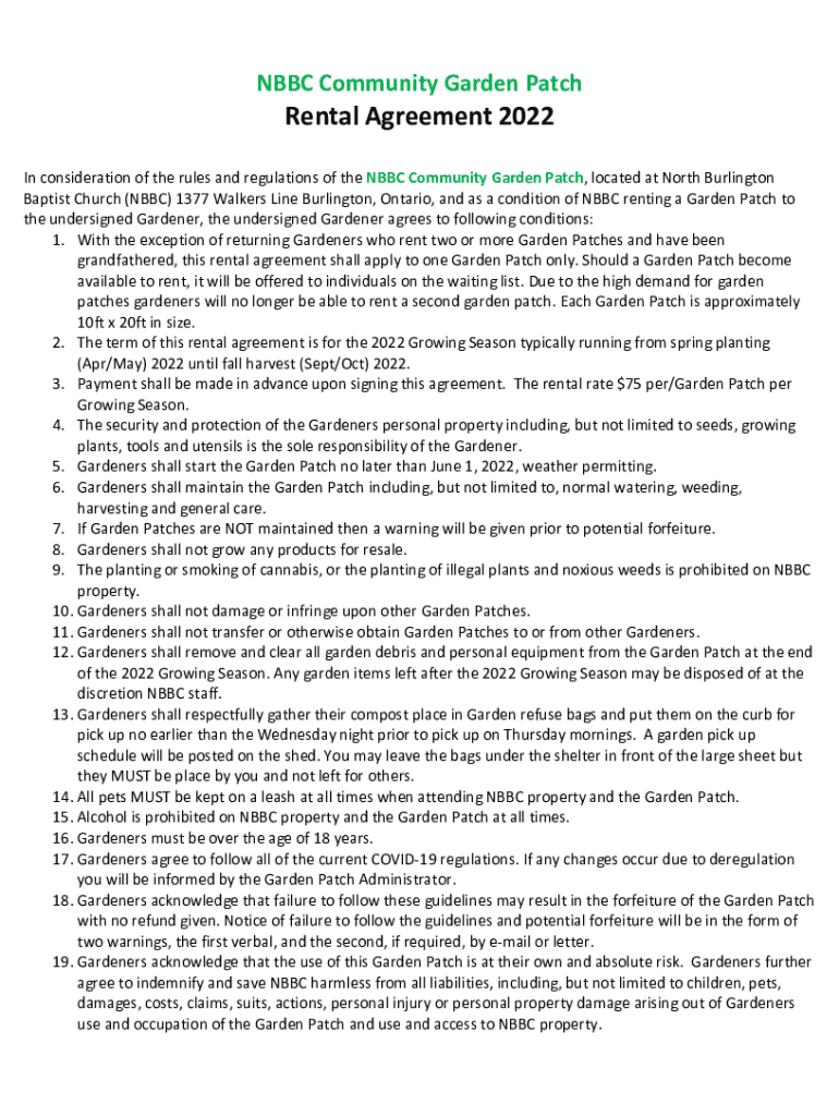 Get the free NBBC Community Garden Patch - Rental Agreement 2022