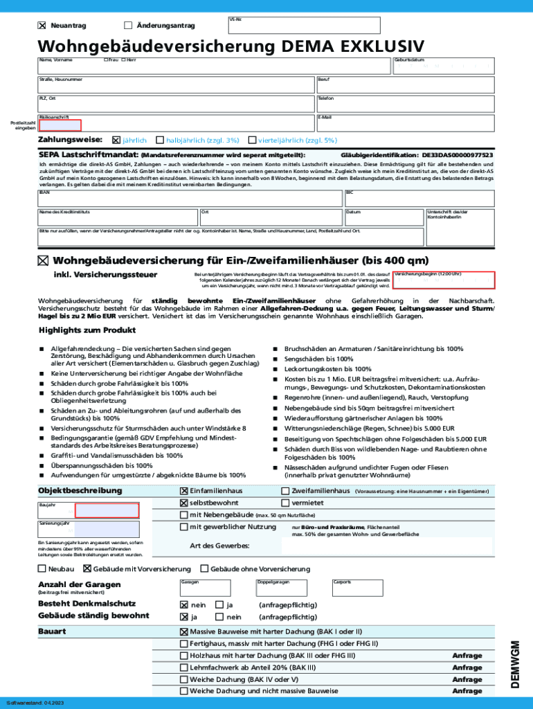 NeuantragVSNr.nderungsantragWohngebudeversicherung DEMO EXCLUSIVE