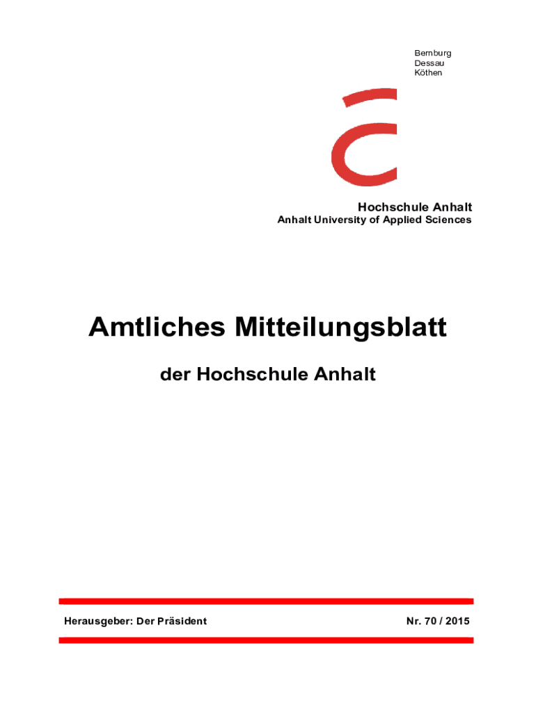 Bern burg Essay KthenHochschule AnhaltAnhalt University of Applied SciencesAmtliches Mitteilungsblatt her Hochschule AnhaltHerausgeber: Her President. 70 / 2015Herausgeber:Hochschule And halt Her