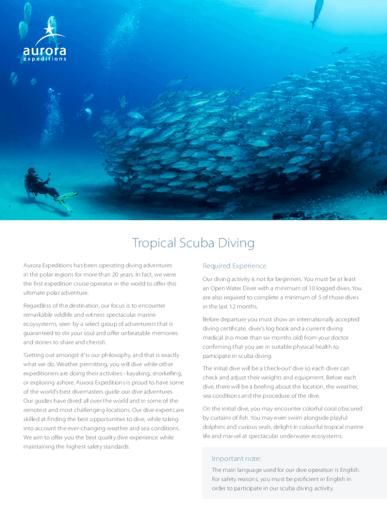 Tropical Scuba Diving Aurora Expeditions has been operating diving adventures in the polar regions for more than 20 years. In fact, we were the first expedition cruise operator in the world to offer