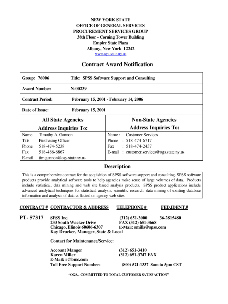 Get the free NYS OGS - 76006 00239 SPSS Software, In. - Software, Support & Consulting - ...