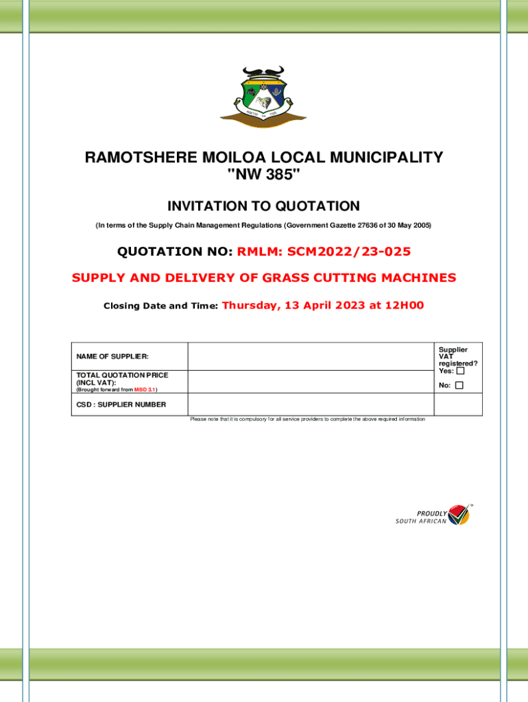 Get the free QUOTATION NO: RMLM: SCM2022/23-025 - ramotshere gov