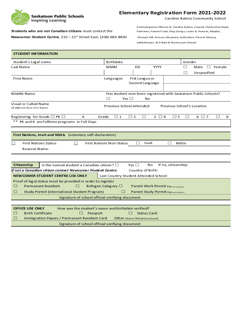 PreKindergarten Offered at: Caroline Robins, Ca swell, Charles Red Hawk, Students who are not Canadian citizens must contact
