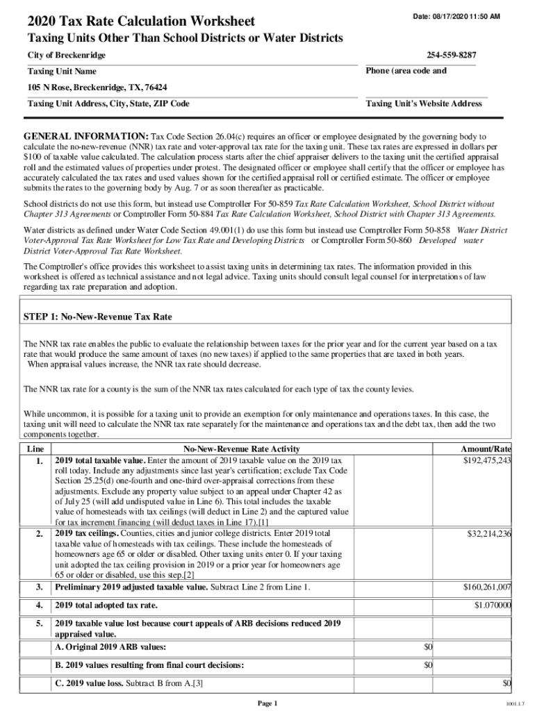 Date: 08/17/2020 11:50 AM2020 Tax Rate Calculation Worksheet