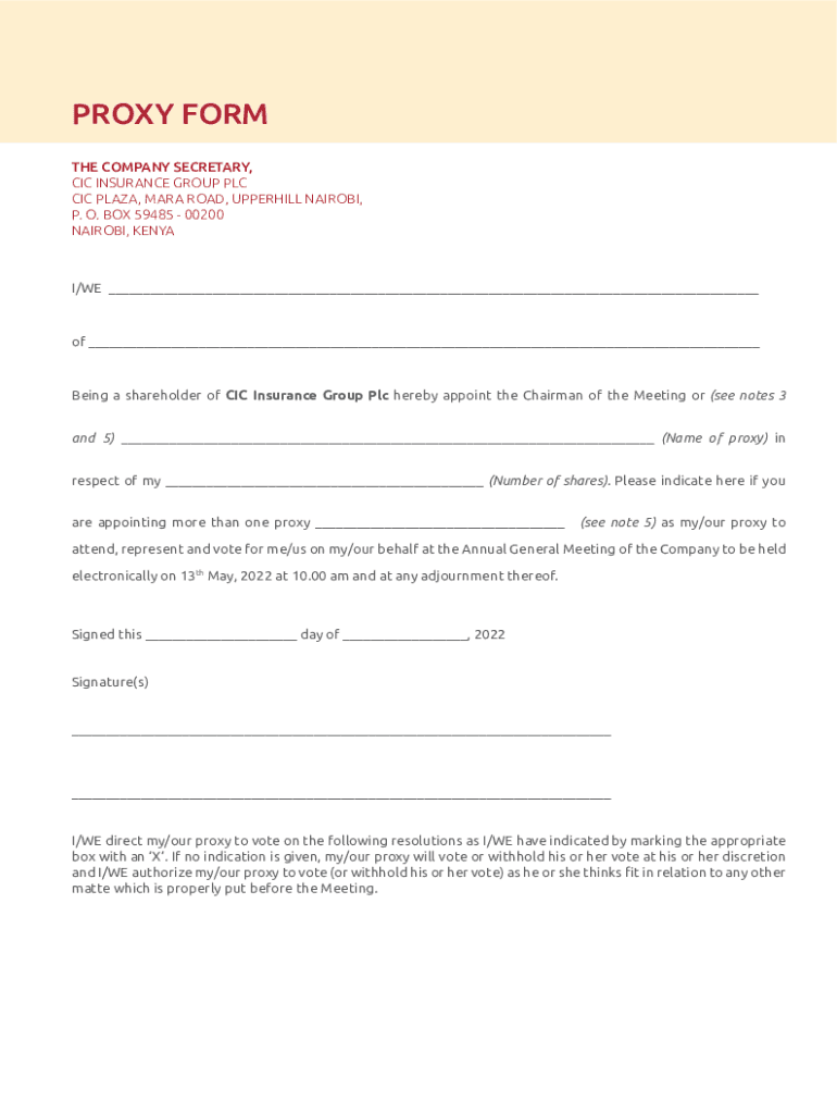 Get the free PROXY FORM - CIC Insurance Group