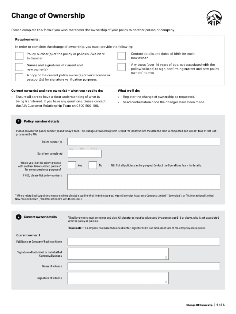Please complete this form if you wish to transfer the ownership of your policy to another person or company. Requirements: