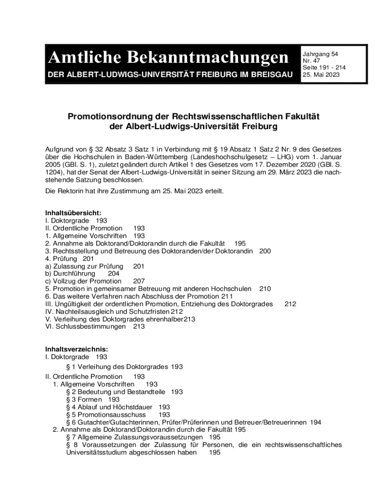 25. Mai 2023Promotionsordnung her Rechtswissenschaftlichen Faculty