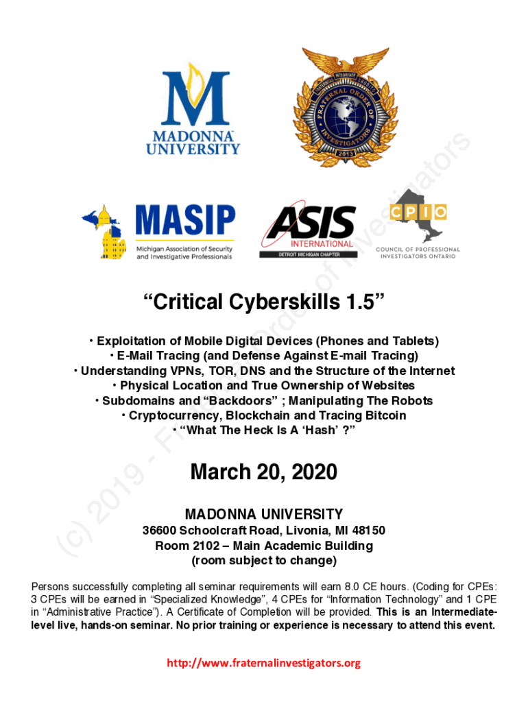 Critical Cyberskills 1.5 Exploitation of Mobile Digital Devices (Phones and Tablets) Email Tracing (and Defense Against Email Tracing) Understanding VPNs, TOR, DNS and the Structure of the Internet