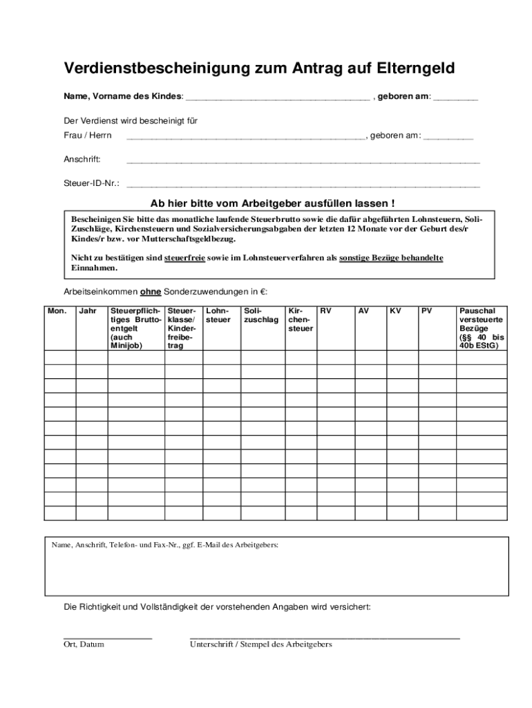 Verdienstbescheinigung sum Ant rag AUF Elterngeld