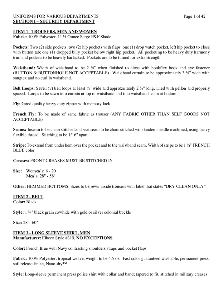 Get the free UNIFORMS FOR VARIOUS DEPARTMENTS Page 1 of 42 ...