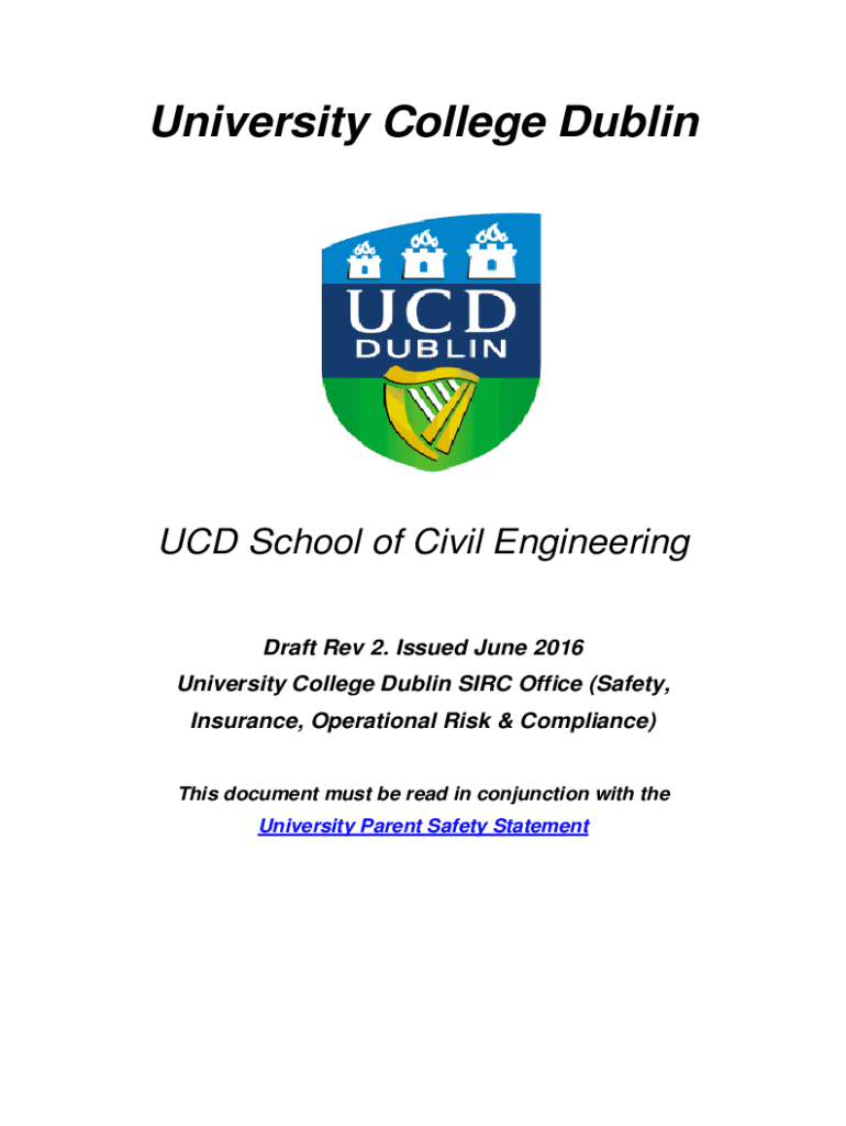 University College Dublin UCD School of Civil Engineering Draft Rev 2. Issued June 2016 University College Dublin SIR Office (Safety, Insurance, Operational Risk & Compliance)This document must be