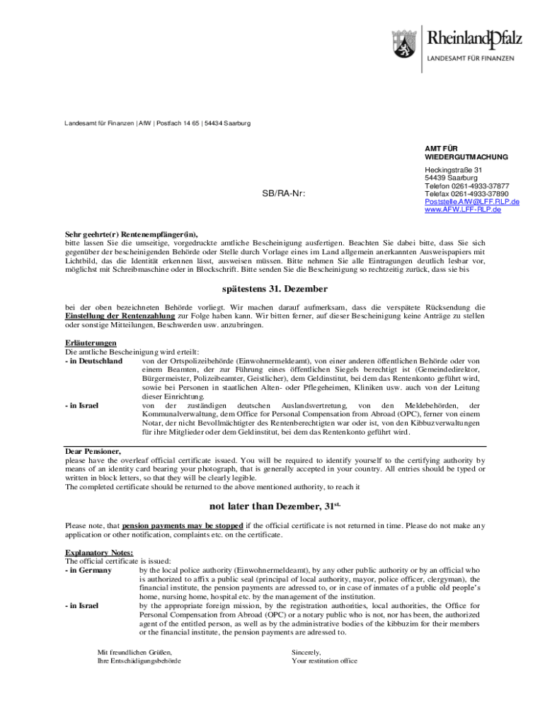 Holen Sie sich kostenlos not later than Dezember, 31st. - Amt fr Wiedergutmachung - afw lff-rlp
