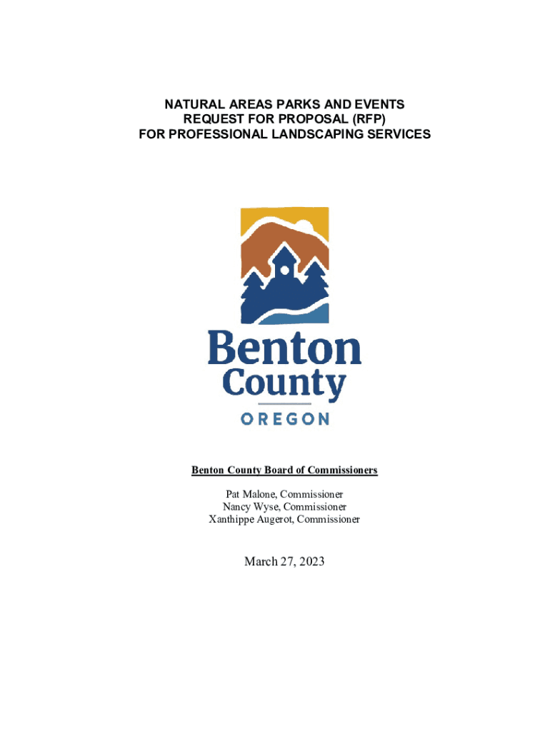 NATURAL AREAS PARKS AND EVENTS REQUEST FOR PROPOSAL (RFP) FOR PROFESSIONAL LANDSCAPING SERVICES Benton County Board of Commissioners Pat Malone, Commissioner Nancy Wise, Commissioner Xanthippe Auger,