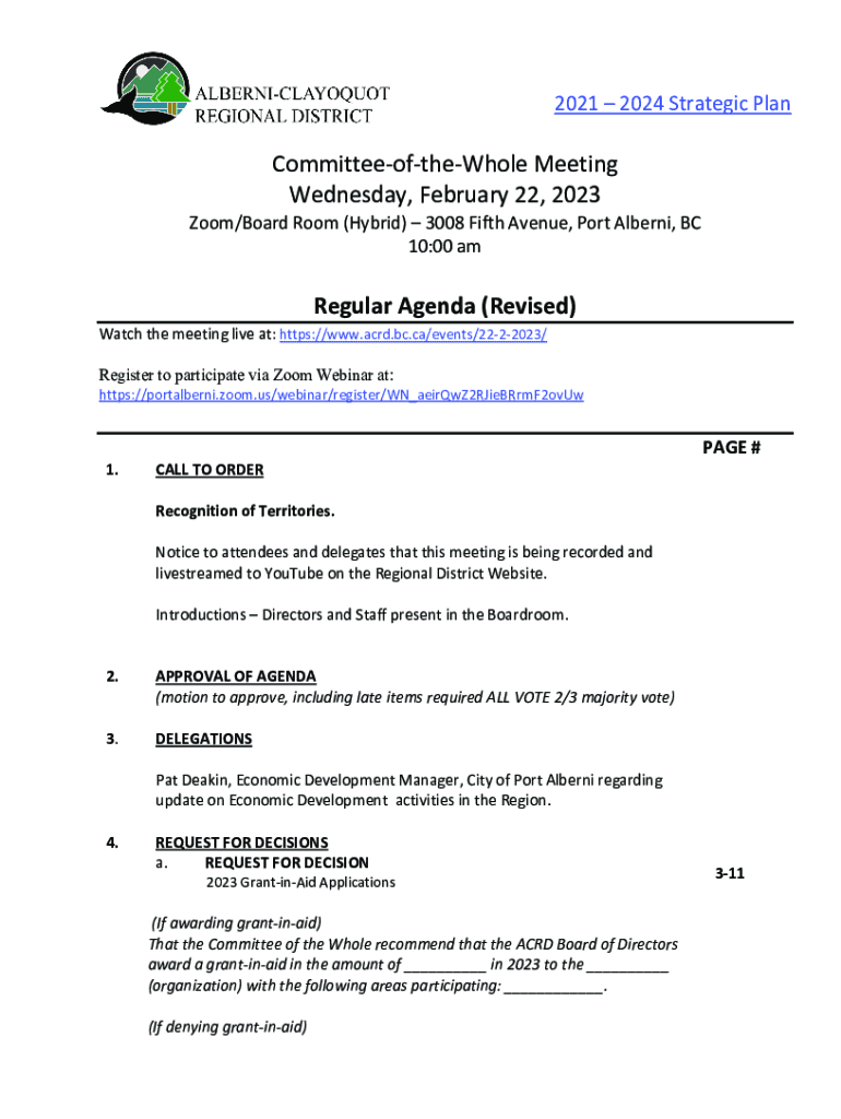 Wednesday, February 22, 2023Zoom/Board Room (Hybrid) 3008 Fifth Avenue, Port Albert, BC