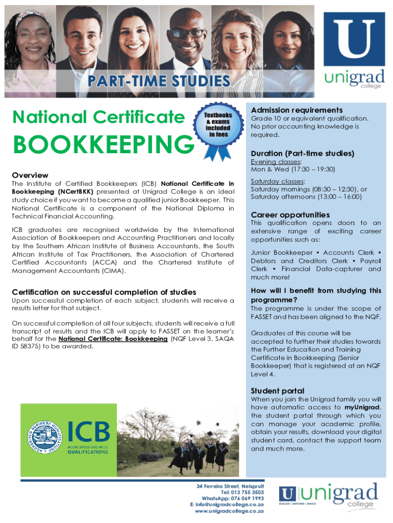 Individuals who are looking to start a career in bookkeeping or accounting are required to complete and file the National Certificate Bookkeeping NQF3.