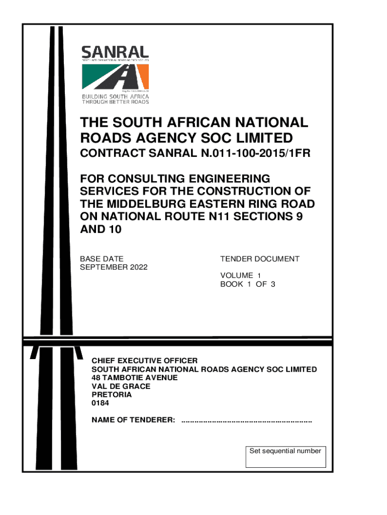 THE SOUTH AFRICAN NATIONAL ROADS AGENCY SOC LIMITED CONTRACT SANDAL N.0111002015/1FR FOR CONSULTING ENGINEERING SERVICES FOR THE CONSTRUCTION OF THE MIDDELBURG EASTERN RING ROAD ON NATIONAL ROUTE