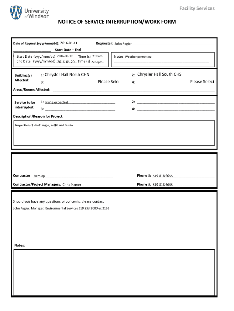 3.Before filling in the form, gather essential information such as the planned interruption date, time, services affected, and contractor contact information.