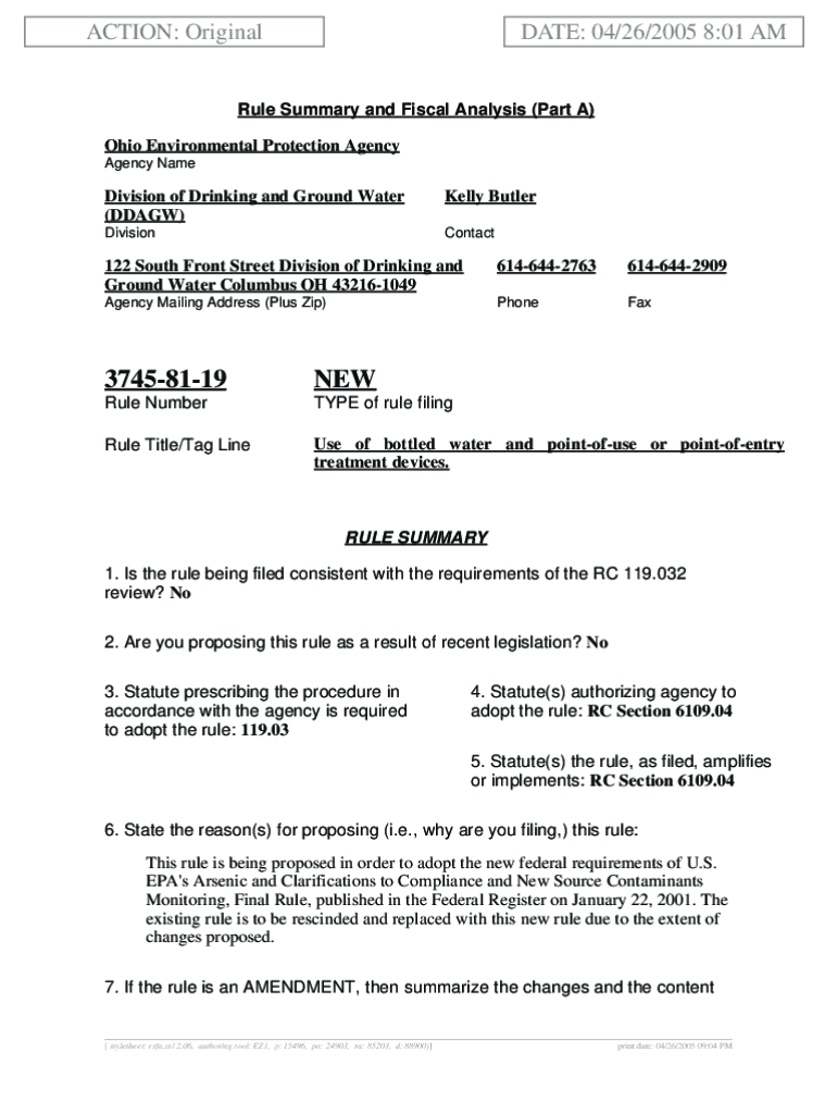 ACTION: Originate: 04/26/2005 8:01 Ampule Summary and Fiscal Analysis (Part A)