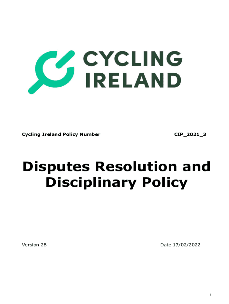 Cycling Ireland Policy Number CIP_2021_3Disputes Resolution and