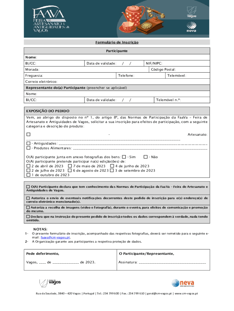Obtenha o gratuito NOTAS: Formulrio de Inscrio Participante Nome: BI/CC: ...