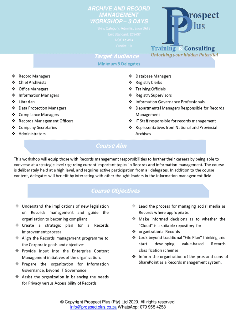 Get the free Higher Certificate in Archives and Records Management