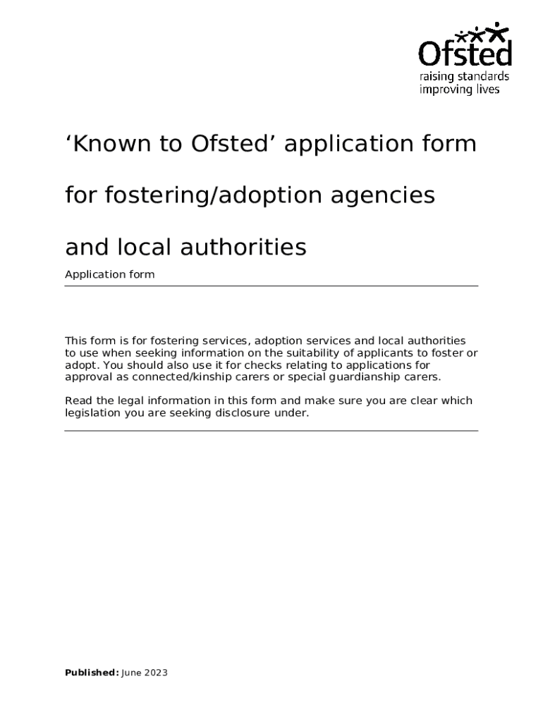 What is 'Known to Ofsted' application for fostering/adoption ... Form?