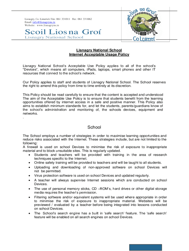 Library, Co. Limerick FN: 061 331011 Fax: 061 331062 Email: info@lisnagryns.ie Website: www.lisnagryns.ieScoil Lies Na Go Library National SchoolLisnagry National School Internet Acceptable Usage