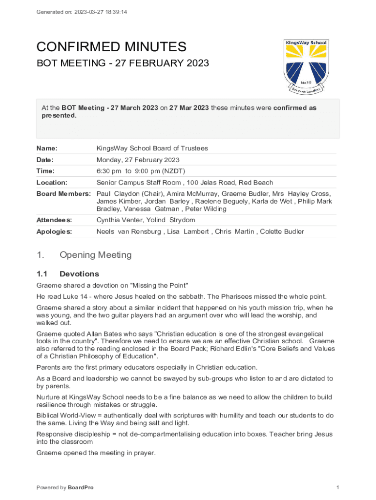 BOT MEETING 27 FEBRUARY 2023At the BOT Meeting 27 March 2023 on 27 Mar 2023 these minutes were confirmed as
