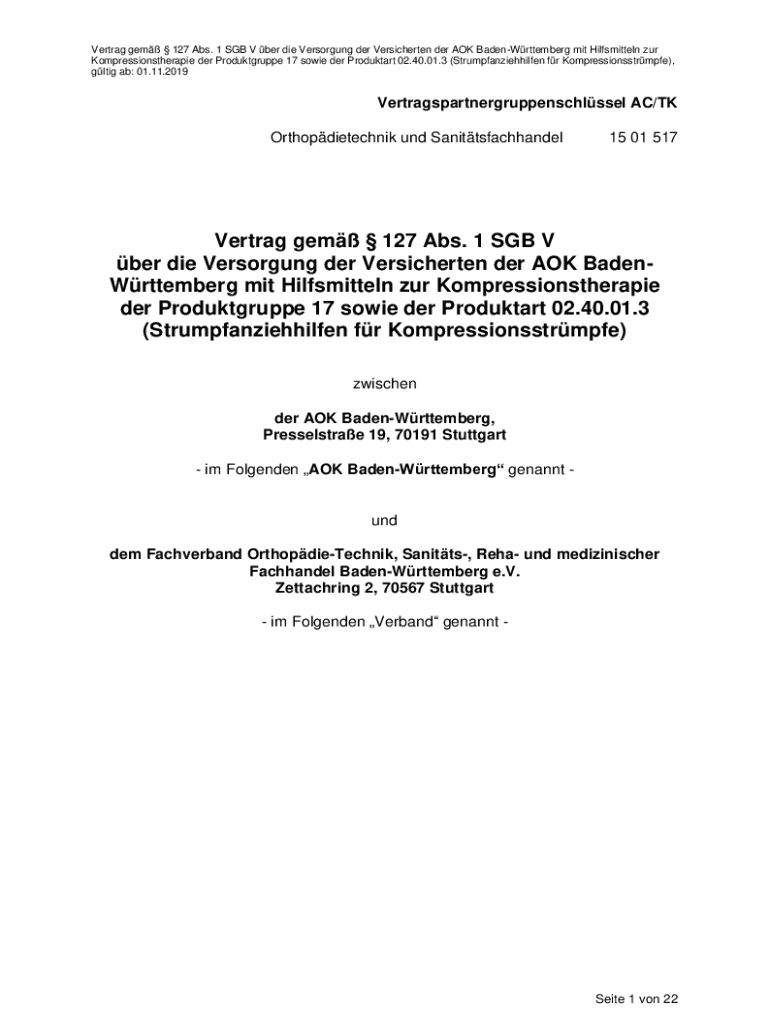 Holen Sie sich kostenlos 1 SGB V ber die Versorgung der Versicherten der AOK Baden-Wrttemberg mit...