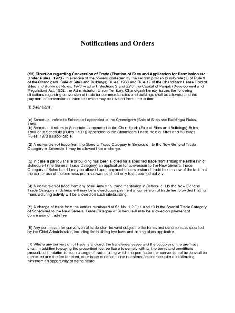 Notifications and Orders(53) Direction regarding Conversion of Trade (Fixation of Fees and Application for Permission etc. Under Rules, .1973 In exercise of the powers conferred by the second proviso