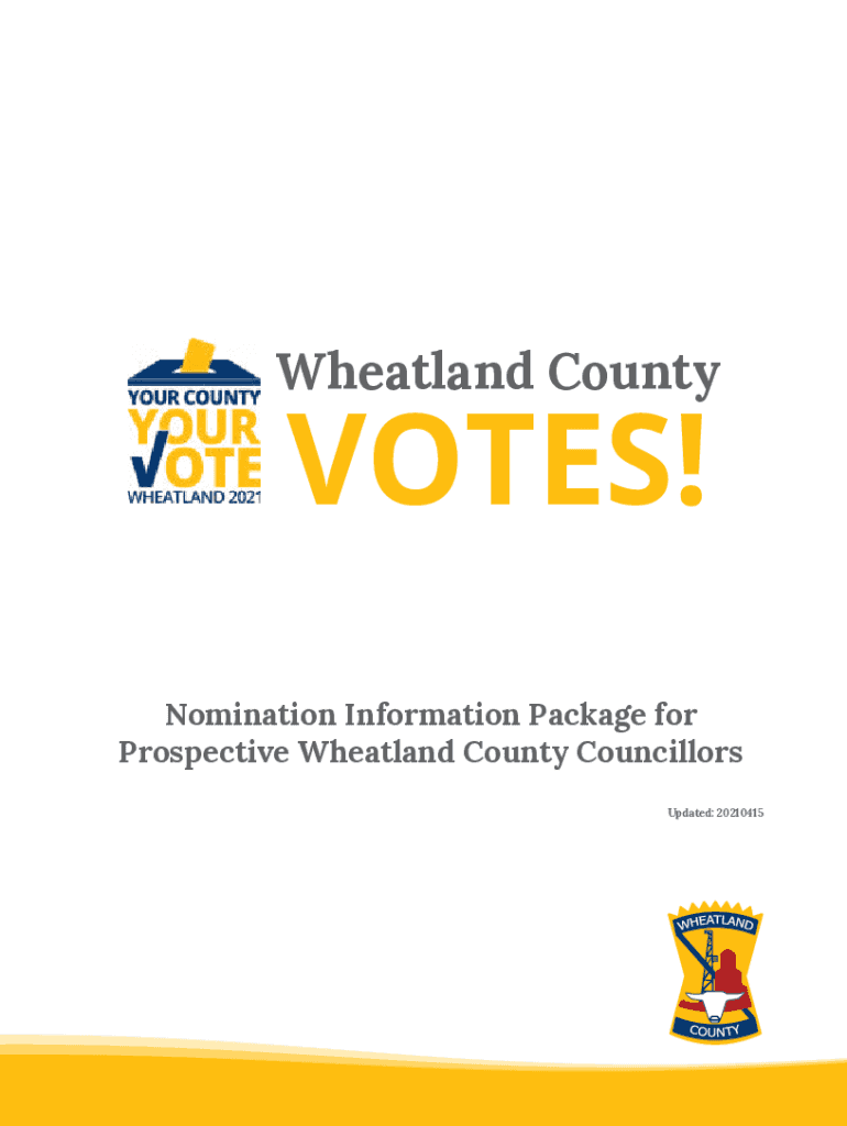 Wheat land Outvotes! Nomination Information Package for Prospective Wheat land County Councillors Updated: 20210415[This page is intentionally left blank]General Information Wheat land County 2021