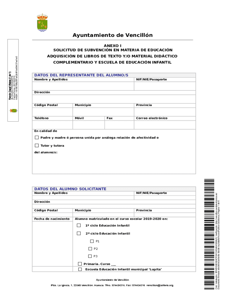 Ayuntamiento de VencillnADQUISICIN DE LIBRAS DE TEXT Y/O MATERIAL DIDACTIC