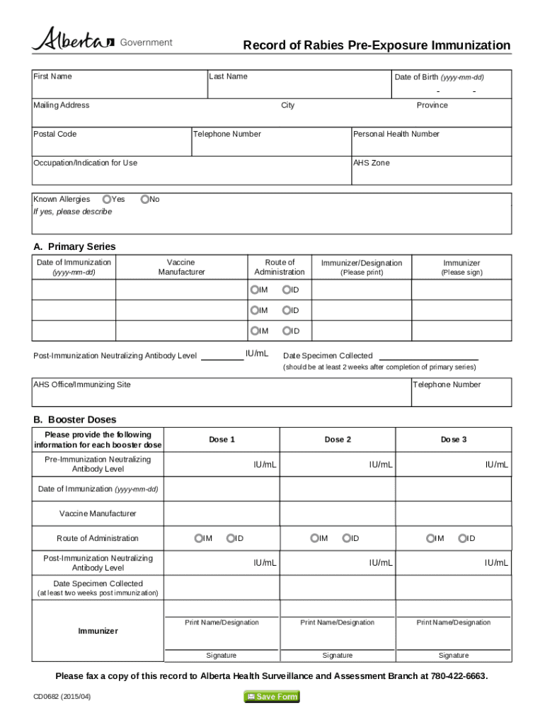 Edit your record of rabies pre-exposure form online