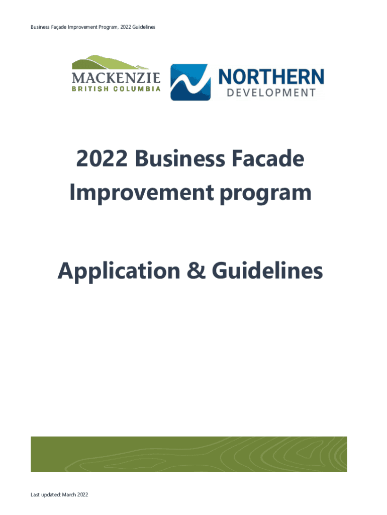 Business Facade Improvement Program, 2022 Guidelines2022 Business Facade Improvement program Application & GuidelinesLast updated: March 2022Contents Program Purpose and Goals .......................................................................................................................